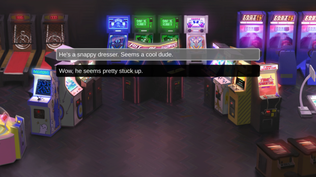 Otro aspecto que puede ser personalizado en Arcade Spirits es nuestra velocidad a la hora de establecer una relación romántica. Con IRIS podemos elegir entre un flirteo coqueto, un romance lento o simplemente pasar de todo y solo establecer relaciones de amistad con los personajes que interactuamos. La comodidad de poder ajustar los niveles de romance al juego se agradece sin duda. Así que si os apetece un romance más lento, o simplemente una historia en la que podéis entablar amistad con cada personaje para concentrarnos en trabajar para salvar la sala de juegos es fantástico.