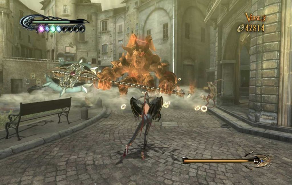 Parte de su encanto también recaía sobre la misma Bayonetta, la bruja más sexy que los videojuegos han dado. Gracias a sus particulares poderes basados en el pelo que la recubre (visto así… tampoco es tan sexy) podrá realizar mil y un combos, así como invocar espectaculares demonios para dar matarile a los enemigos mas poderosos. Puede que su historia en ocasiones es incongruente, o incluso demasiado rebuscada (japonesadas, al fin y al cabo) pero la narrativa es lo de menos. Lo que uno busca en Bayonetta es diversión directa, y para los mas perfeccionistas, conseguir todos los trofeos platinos que se pueda. Tarea nada fácil, os voy avisando.