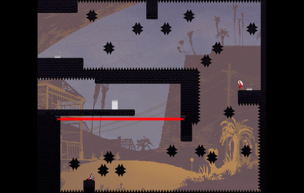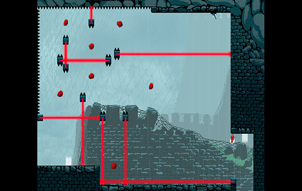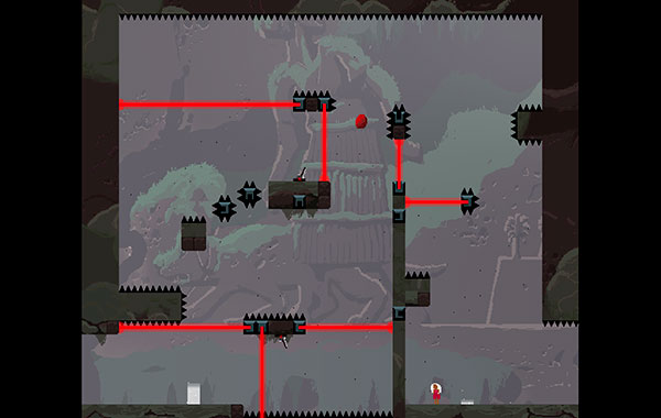 Os puedo decir sin temor a equivocarme que Super Meat Boy es un paseíto comparado con el título que estamos analizando. Y todo es debido a la gravedad o la inercia que tendremos con los cambios de gravedad. Me explico: una vez que cambiemos de sentido a la gravedad, no podremos volver a alterarla en el mismo salto hasta que no toquemos una piedra de color rojo que anda suspendida en el escenario. Pues bien, habrá fases donde tendremos que alterar la gravedad fácilmente siete veces sin tocar el suelo, y eso equivale a tocar siete piedras rojas para viajar en el correspondiente sentido.