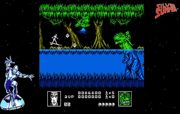 Luego hay otros dentro de MARVEL MaXimum Collection que bajo mi punto de vista son más como curiosidad que otra cosa. Por ejemplo, Spider-Man/X-Men: Arcade’s Revenge tiene sus versiones de consolas de 16 bits, pero también sus respectivos ports a portátiles que, bueno… puedes dejarte los ojos solamente con los primeros minutos. También como curiosidad está Silver Surfer, el único título de la colección que cambia de género a un shooter endemoniadamente difícil que podremos superar fácilmente gracias al sistema de rebobinado rápido.