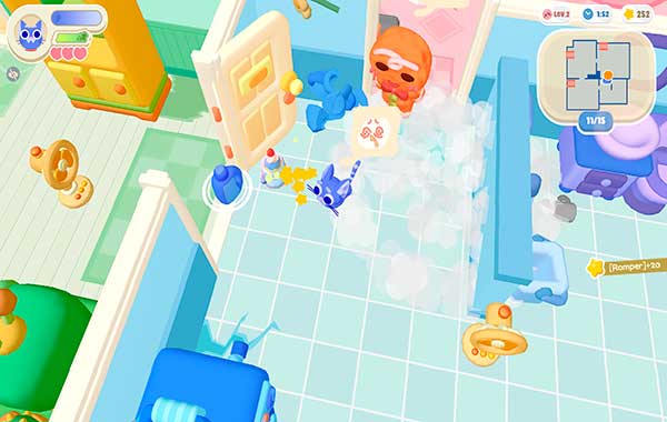 Liquid Meow nos presenta Messy Up, un título asimétrico con un gran componente multijugador local. Podremos jugar como las mascotas o como el dueño de la casa, cada uno con un rol específico y una misión que cumplir. Nuestro objetivo será fácil, dejar todo patas arriba intentando que el dueño no nos pille. Para eso contaremos con poderes especiales, pero sobre todo tendremos que valernos de los diferentes artilugios que están esparcidos por las habitaciones.