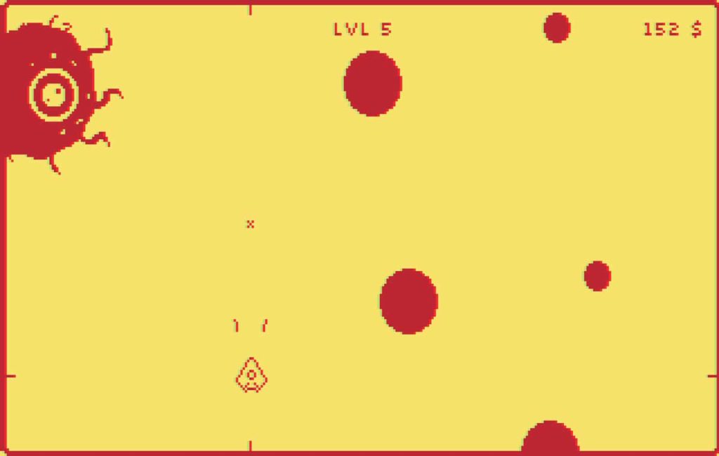 Cono he dicho, la jugabilidad se basa en la técnica “twin-stick”. Un stick controla el movimiento de la nave mientras que el otro stick nos permite disparar y controlar la trayectoria del disparo. Junto con este esquema básico, tendremos un dash que será fundamental para esquivar las balas del enemigo, e incluso atacar a los oponentes en situaciones de riesgo. Unos controles que no tardaremos en dominar, aunque estarán algo limitados al principio debido a las carencias de nuestra nave. Las monedas que vamos recogiendo tienen su cometido, y ahora os explicaremos cuál es.