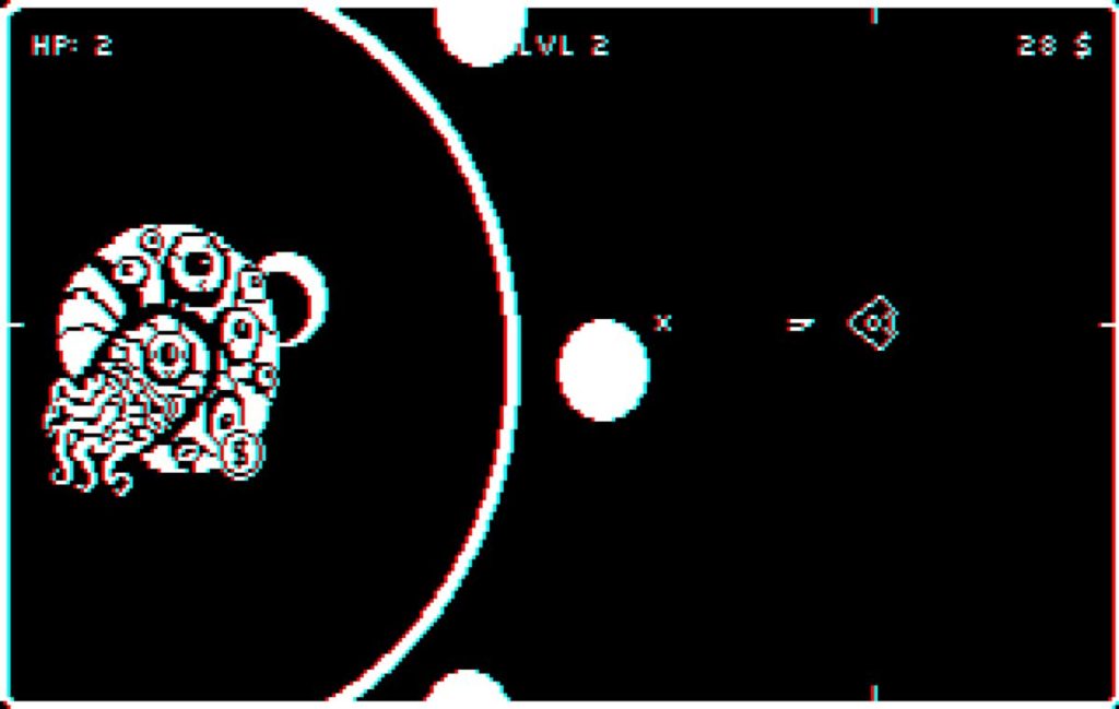 Gráficamente, Null Drifter choca al principio. No por ese estilo visual basado en los primeros juegos de un sólo bit, sino por la brutal aberración cromática que presenta el juego. Todo estará difuminado, y salvo alguna paleta de color concreta, el resto hace hasta daño a la vista. Es el precio que hay que pagar por disfrutar de una experiencia clásica, pero por suerte podemos quitar esa aberración, e incluso el temblor de la pantalla cuando nos impacta una bala o nos queda solo una vida. Hay otros elementos que por desgracia no se pueden eliminar, y pueden emborronar en parte la experiencia, especialmente en los niveles mas altos. Se trata del parpadeo de algunos enemigos o de sus balas, que hacen que no las veamos venir. Eso, cuando toda la pantalla está literalmente llena de proyectiles, puede suponer un problema.