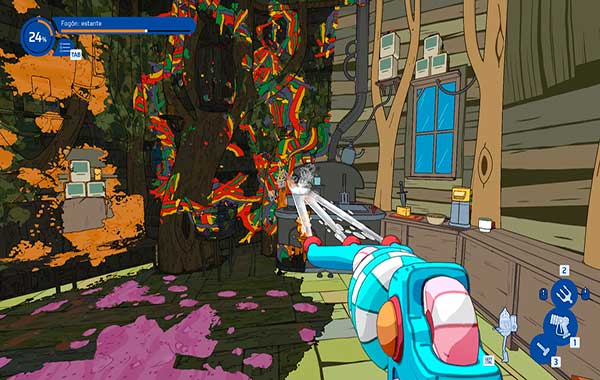 En sí las mecánicas son las mismas… Dejar todo como una patena y conseguir el 100% de pulcritud en cada fase. La gracia reside en que la mugre no es la típica negra de todas las fases (ojo, que también la hay), sino que en la mayoría de situaciones tiene mucho más colorido. También destacan los objetos a limpiar, con ese aspecto “cartoon” que se sale un poco de la norma habitual.