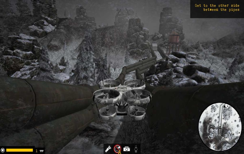Es una lástima que Robot Squad Simulator X no tenga una historia que narrar. Todas las misiones son independientes y sin ningún nexo entre ellas. Esto puede suponer un lastre a la hora de “enganchar” al jugador, aunque no hay mal que por bien no venga. La falta de historia permite al juego ponernos en parajes de lo más variados sin dar muchas explicaciones ni andarse por las ramas. Igual estamos en un parque con un francotirador suelto, que recorriendo parajes nevados en busca de un helicóptero abatido o adentrándonos en minas derruidas en busca de oro. Lástima que no se potencie de alguna forma la “epicidad” (o dramatismo, llamadlo como queráis) en cada misión. Pese que en algún momento si que habrá un temporizador para meter prisa, podremos tomarnos el juego con calma y a nuestro ritmo, restando muchos enteros a la tensión que debería tener el propio título.