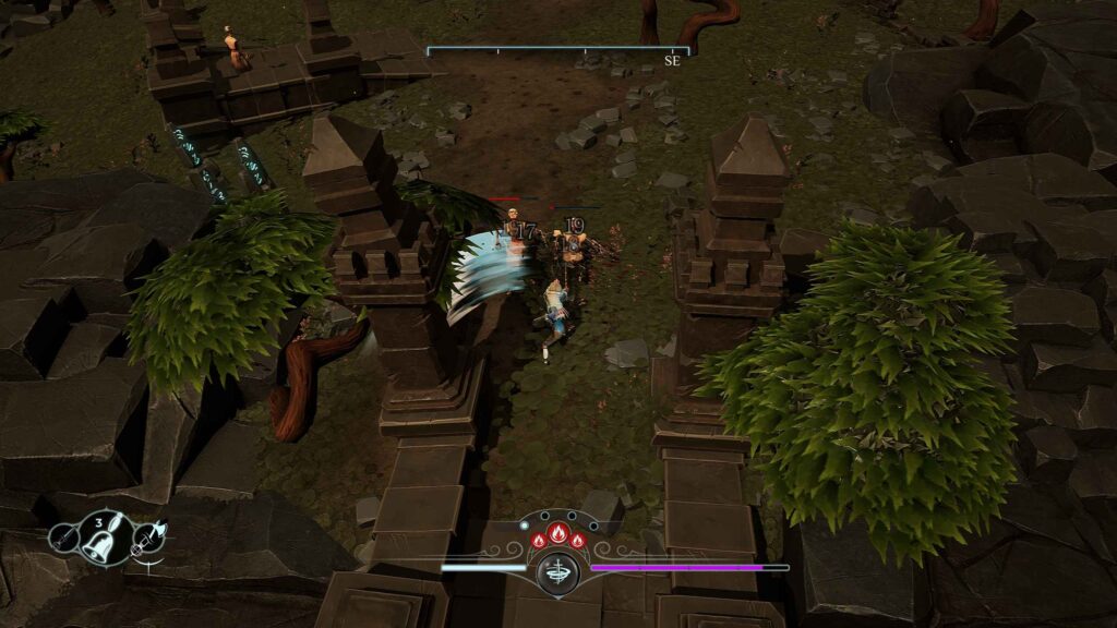 La perspectiva isométrica aporta claridad y amplitud visual, permitiendo entender el entorno de un vistazo. Tambien introduce desafíos, como ataques que pueden quedar parcialmente ocultos y obligan a moverse con más intención. Esta perspectiva hace que el posicionamiento sea crucial, convirtiendo cada enfrentamiento en un pequeño rompecabezas táctico donde importa tanto la distancia como la orientación.