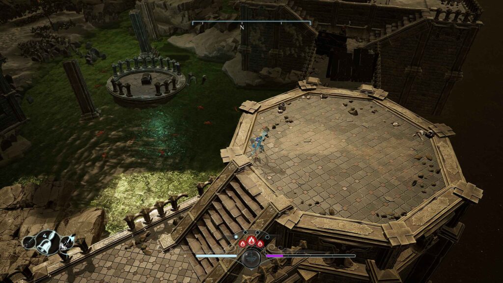 A esto se suman elementos metroidvania que enriquecen la exploración. Tendremos zonas inicialmente inaccesibles que se abren al obtener nuevas habilidades o llaves, rutas alternativas que recompensan el regreso a áreas ya visitadas. Esta estructura invita a investigar cada rincón del mundo. No es un metroidvania puro, pero sí incorpora lo suficiente para que la sensación de descubrimiento sea constante. En conjunto, la jugabilidad se siente como una reinterpretación fresca del soulslike, más ágil y exploratoria, donde la isometría y el diseño del mundo trabajan juntos para ofrecer una experiencia exigente, atmosférica y con una identidad propia dentro del género.