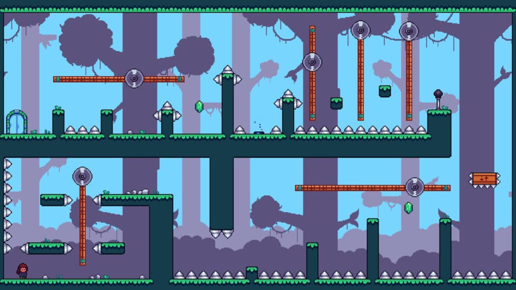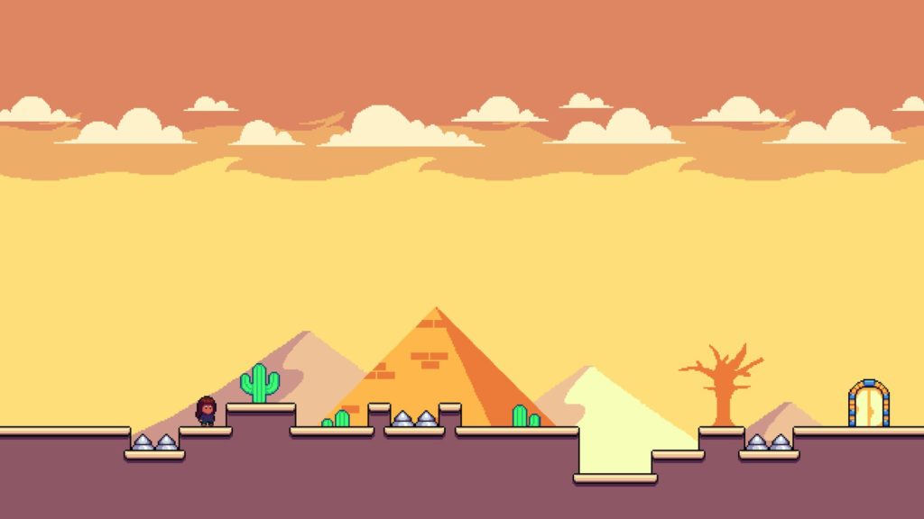 Somos SAOMI, una chica que la verdad, no sabemos su objetivo, ya que el juego no cuenta con ningún tipo de historia, ni conversación, ni cinemática, ni información contextual, nada. Y bueno, esto no sería del todo un punto negativo, si el juego fuera divertido o funcionara bien, pero no lo hace. Empezamos nuestra aventura en un desierto, con niveles bastante fáciles que superaremos sin ninguna complicación. Pero conforme vayamos avanzando se irá complicando la cosa, ya que la pantalla se llenará de peligros como sierras, pinchos y enemigos. En los primeros niveles solo podremos saltar, pero cuanto más avancemos y más se compliquen las cosas, se nos otorgaran diferentes poderes (dos en concreto), doble salto, y una especie de dash. Esto viene bastante bien para que el juego gane en dinamismo, pero no es suficiente.