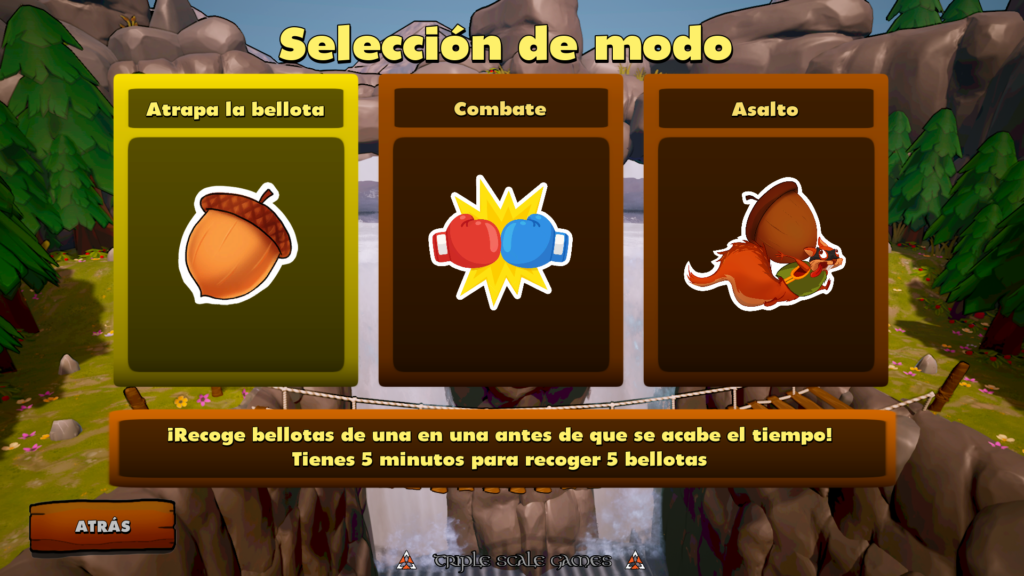 El modo Atrapar la Bellota es probablemente la forma más pura del famoso modo capturar la bandera, mientras que en el Modo Combate debes golpear las nueces de los miembros del equipo contrario y el último equipo en pie gana (por cruel que esto pueda sonar resulta muy divertido). En el Modo Asalto debéis lidiar con cinco nueces a la vez, para que las acapares o las robes del refugio de tu oponente. En resumen, no importa el modo de juego, tenemos garantizada la diversión frenética.