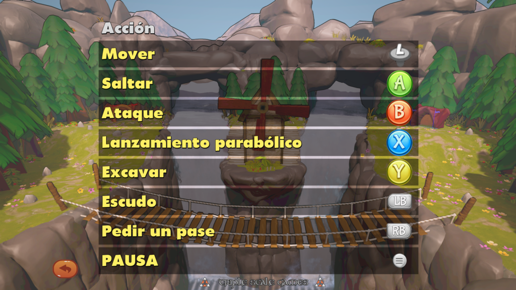 Atrapa la bellota es probablemente el modo mas divertido de Save Your Nuts, y es el que más he jugado. En él, hasta ocho jugadores pueden competir para recoger y anotar cinco nueces (una por vez) en un tiempo de cinco minutos. El detalle está en que te mueves rápidamente sin carga, pero cuando coges una nuez tu movimiento se ralentiza y te deja a merced de los ataques de los miembros del otro equipo, que intentarán golpearte y hacerte soltar tu preciada carga. En este modo de juego puedes pasar la nuez, tirarla o intentar lanzarla a tu portería. Si bien se puede pensar en emplear una estrategia de “el más rápido que se vuelva loco”, mientras los demás del equipo bloquean, en realidad la posesión de la nuez cambia constantemente y cualquier intento de estrategia se esfuma.