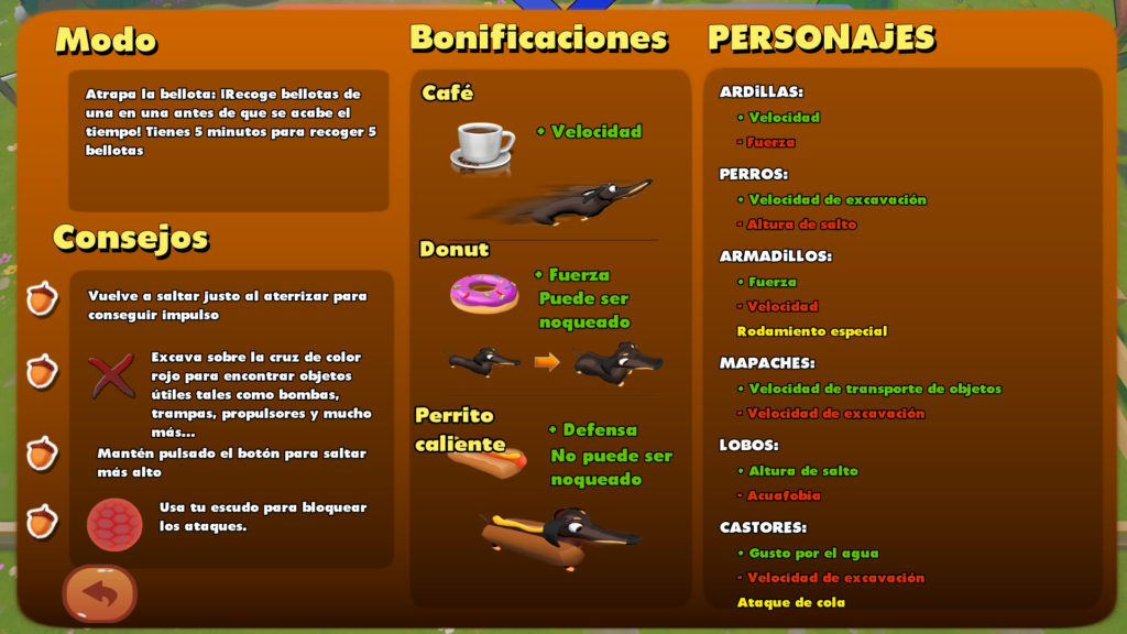 Las cinco clases de jugadores que encontramos son: corredor, saltador, excavador, tanque y nadador. Cada una de las diferentes clases está representada por diferentes animales, y todos hacen algo un poco mejor que sus compañeros. Esto es perfecto para un buen trabajo en equipo. El corredor es rápido, excelente para atrapar las nueces y para anotar. El tanque es ideal para golpear y bloquear. Los cavadores son excelentes para sacar potenciadores enterrados. Y, por supuesto, cada personaje es personalizable para obtener el aspecto específico que deseas.