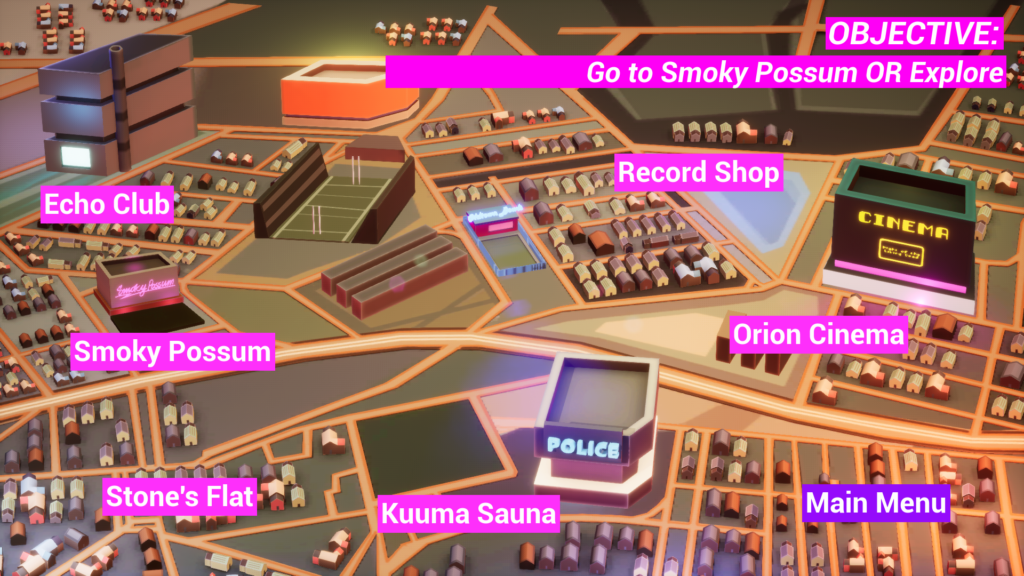 Al principio, STONE da la falsa impresión de que al menos tendrás un montón de pequeños objetos raras con los que interactuar. El piso de STONE tiene objetos como una caja de ritmos para tocar, varios objetos aleatorios para interactuar y obtener diálogos divertidos, y puede encender su televisor para ver películas mudas clásicas. Sin embargo, ninguna otra ubicación replica esto. Pasarás un tiempo en un bar, un club y una bolera, pero no tienen nada con lo que puedas meterte. Los hace sentir sin vida, incluso si están llenos de personas.