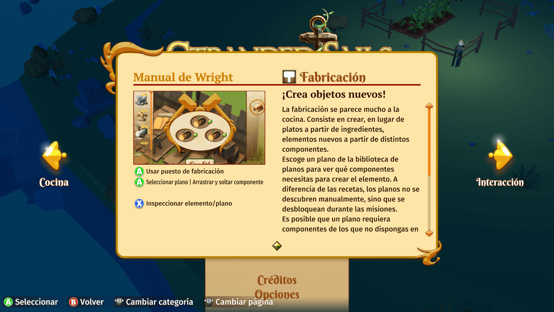 Asimismo, la mayoría de recetas para fabricar cosas nos las dan los propios tripulantes, más en el caso de la cocina debemos combinar los ingredientes para descubrir nuevas recetas. El problema reside en que no disponemos de la capacidad de combinar para buscar recetas, sino que nos dan recetas con huecos de ingredientes para ir probando combinaciones. Literalmente hay que acertar los dos o más ingredientes de cada receta para desbloquearla. Esto resulta lento y nada intuitivo, dado que quizás en la receta número dos esos ingredientes juntos no son válidos, pero en la cuatro si…