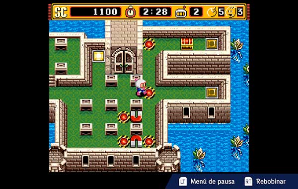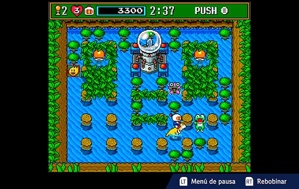 Podremos disfrutar de las primeras cinco entregas numeradas de Super Bomberman de Super NES, además de los clásicos Bomberman I y Bomberman II de NES. Es cierto que los títulos de 8 bits han perdido todo el encanto, quedándose en propuestas austeras, pensadas más bien como curiosidad que como producto disfrutable. Eso sí, aquellas joyas lanzadas en la consola de 16 bits no tienen desperdicio. Es un píxel que no envejece, lleno de colorido y con una estética muy nipona que encaja de maravilla.