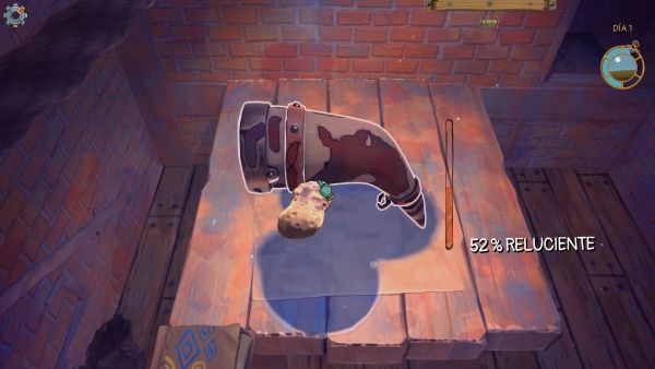 Pero donde se desarrolla la magia es en el taller. Es aquí donde nos llegan sacos con la basura que vamos a vender. Primero tenemos que liberar la baratija de restos de barro con un cincel y para más tarde limpiarla y en algunos casos incluso unir las diferentes piezas. Cada proceso de estos es un minijuego que al principio puede resultar entretenido pero, como los trabajos de verdad, una vez hecho 30 ya resulta repetitivo e incluso irrelevante. Además, picar con el cincel o limpiar con la esponja s con el Joystick del mando es bastante incómodo siendo el ratón el modo natural para todo el juego. Podemos conectar uno a la Xbox, pero se traba en algunas opciones con el mando. Por suerte es Trash Goblin es Play Anywhere.