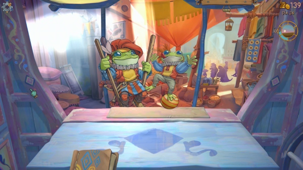 Al calificarse él mismo como un juego Wholesome, Trash Goblin deja claro que la tranquilidad es parte del negocio. El problema surge cuando ese bienestar se traduce en que es un juego muy repetitivo. Pasan los días y el goblin se levanta para descubrir baratijas, limpiarlas y venderlas. No está clara la motivación ni el fin de hacerlo, por lo menos en las primeras horas. Lo que te quieren vender como historia pasa de forma ajena a nuestra labor y son pinceladas tan pequeñas que apenas sirven como argumento.