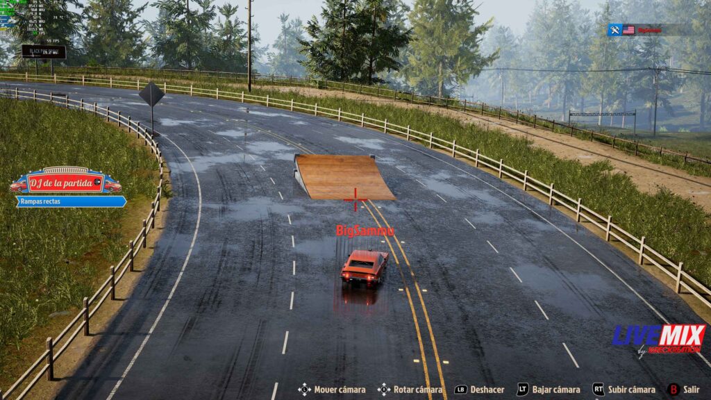 La comparación con Forza Horizon es inevitable. Ambos títulos ofrecen libertad para explorar, competir y modificar el entorno. Wreckreation incluso permite crear tus propias pistas en tiempo real, gracias a su sistema GameDJ, que recuerda al modo blueprint de Horizon pero con más caos y menos pulido. Puedes colocar rampas, obstáculos y elementos decorativos mientras conduces, lo que da lugar a situaciones impredecibles y divertidas.
