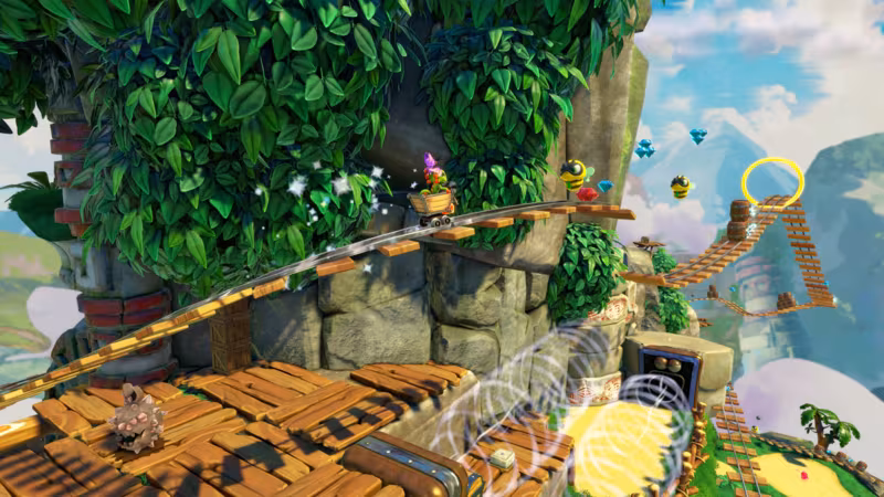 El género de las plataformas en tres dimensiones tuvo su época dorada en los noventa, cuando títulos como Banjo-Kazooie o Super Mario 64 marcaron el camino con su combinación de exploración, humor y montones de objetos por recolectar. En 2017, el estudio independiente Playtonic Games, formado por antiguos miembros de Rare, intentó recuperar esa fórmula con Yooka-Laylee, una aventura protagonizada por un camaleón y una murciélaga que pretendía ser una carta de amor a los clásicos. El resultado, aunque disfrutable, dividió a la comunidad. Su encanto visual y tono nostálgico convencieron a unos, mientras que otros criticaron un diseño algo torpe y una cámara difícil de domar.