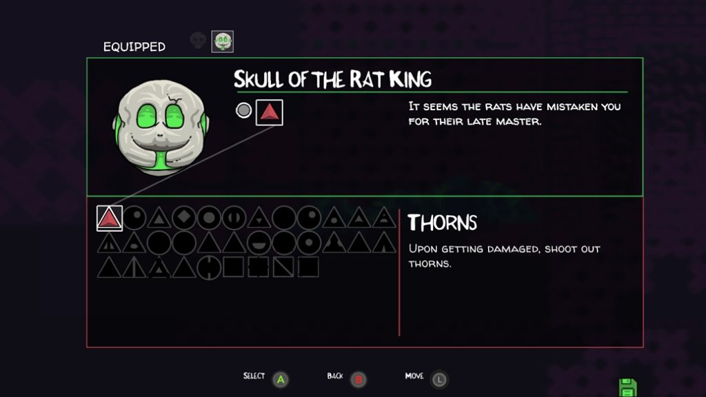 Cambiar de cráneo se podrá realizar en unos puntos concretos del mapa que están a modo de checkpoint. Estos se activarán llenándolos del moco que recolectamos al matar enemigos. Este moco además nos sirve para curarnos en determinados momentos de la partida. Además de los diferentes cráneos que sueltan los jefes finales, si exploramos las zonas a fondo encontraremos cráneos ocultos que nos ayudarán en nuestra aventura en Zapling Bygone.