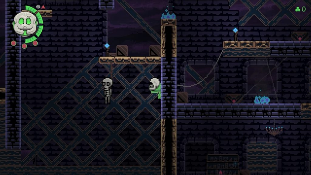 Como buen metroidvania el mapa de Zapling Bygone es un laberinto de túneles, plataformas, castillos y zonas donde abundarán los enemigos. Tendremos que explorar diferente zonas dando saltaremos de acá para allá para ir descubriendo atajos y desentrañar la historia de cada ubicación. En este punto el juego es muy original, cada zona cuenta con un jefe final, que al ser derrotado arrojará su cráneo al suelo y el cual podremos equipar. Cada cráneo de cada jefe final nos otorgará habilidades bien diferenciadas. Por lo que tendremos que elegir bien, cual equiparnos según el nivel en el que estemos.