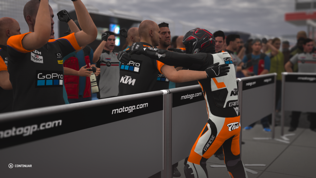 Si no movemos el dinero con cabeza podríamos acabar arruinados con los sueldos del equipo sin ver beneficios suficientes. Más no os preocupéis, pues MotoGP 20 ofrece una personalización profunda de las físicas y la dificultad. Caerse al suelo por tomar mal una curva es cosa del pasado. Si no sois especialmente hábiles, es posible adaptar las físicas, la dificultad de la IA y la simulación en general para tener una experiencia disfrutable a cualquier nivel. Además, es posible escoger entre Moto3, Moto2 o MotoGP para ir creciendo desde lo más bajo o directamente empezar donde queramos.
