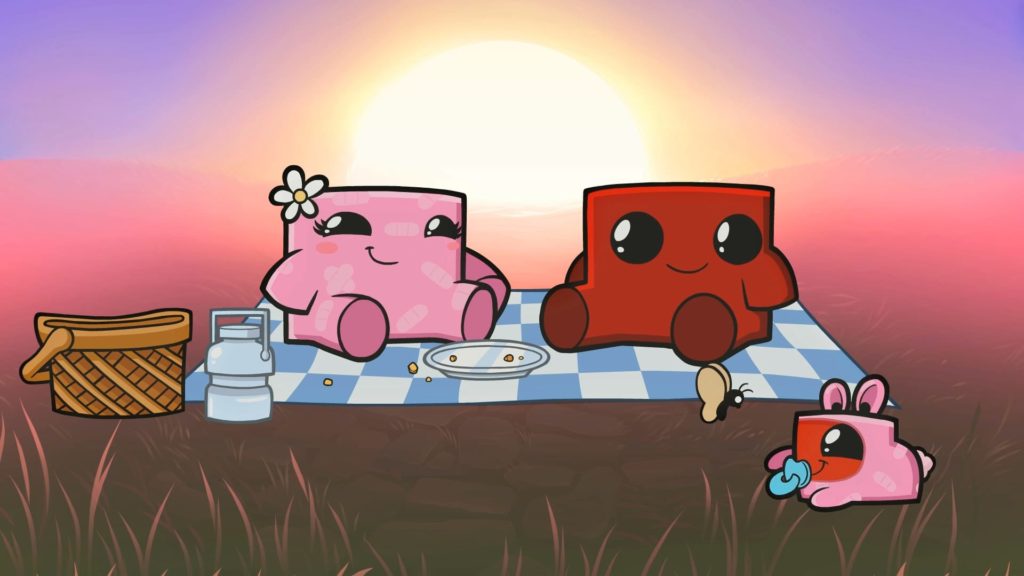 Por último, quiero hacer una pequeña reseña del apartado artístico. A nivel visual el juego se ve precioso, su estética cartoon hace que los personajes y las cinemáticas tengan una buena factura de producción. De hecho, Nugget, la hija de Meat Boy y Bandage Girl, es simplemente adorable. La banda sonora, además, es bastante cañera, repleta de riffs de guitarra eléctrica y mezclada en algunos temas de música electrónica. En conjunto es muy variada y acompaña perfectamente al ritmo y la intensidad de la partida.