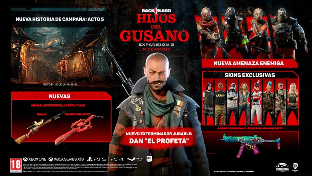 Así lo ha anunciado Warner Bros Games y Turtle Rock Studios donde la expansión Hijos de Gusano estará disponible el próximo 30 de agosto como parte del pase anual de Back 4 Blood incluido en las ediciones Deluxe y Ultimate. Para el resto de versiones del título se podrá adquirir este DLC por separado.