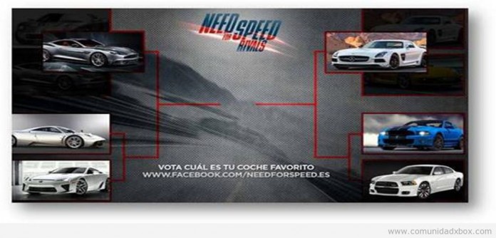 En el evento “El Rey de las Calles” de Need for Speed Rivals en el facebook de EA podrás votar por tu modelo favorito entre los siguientes: Ford Mustang Shelby GT500, Ford GT, Porsche Cayman S, Dodge Charger SRT8, Mercedes SLS AMG Black Series, Pagani Huayra, Lexus LFA y el Aston Martin Vanquish. El coche que consiga más votos estará disponible para ambos bandos, policías y corredores, en Need for Speed Rivals.
