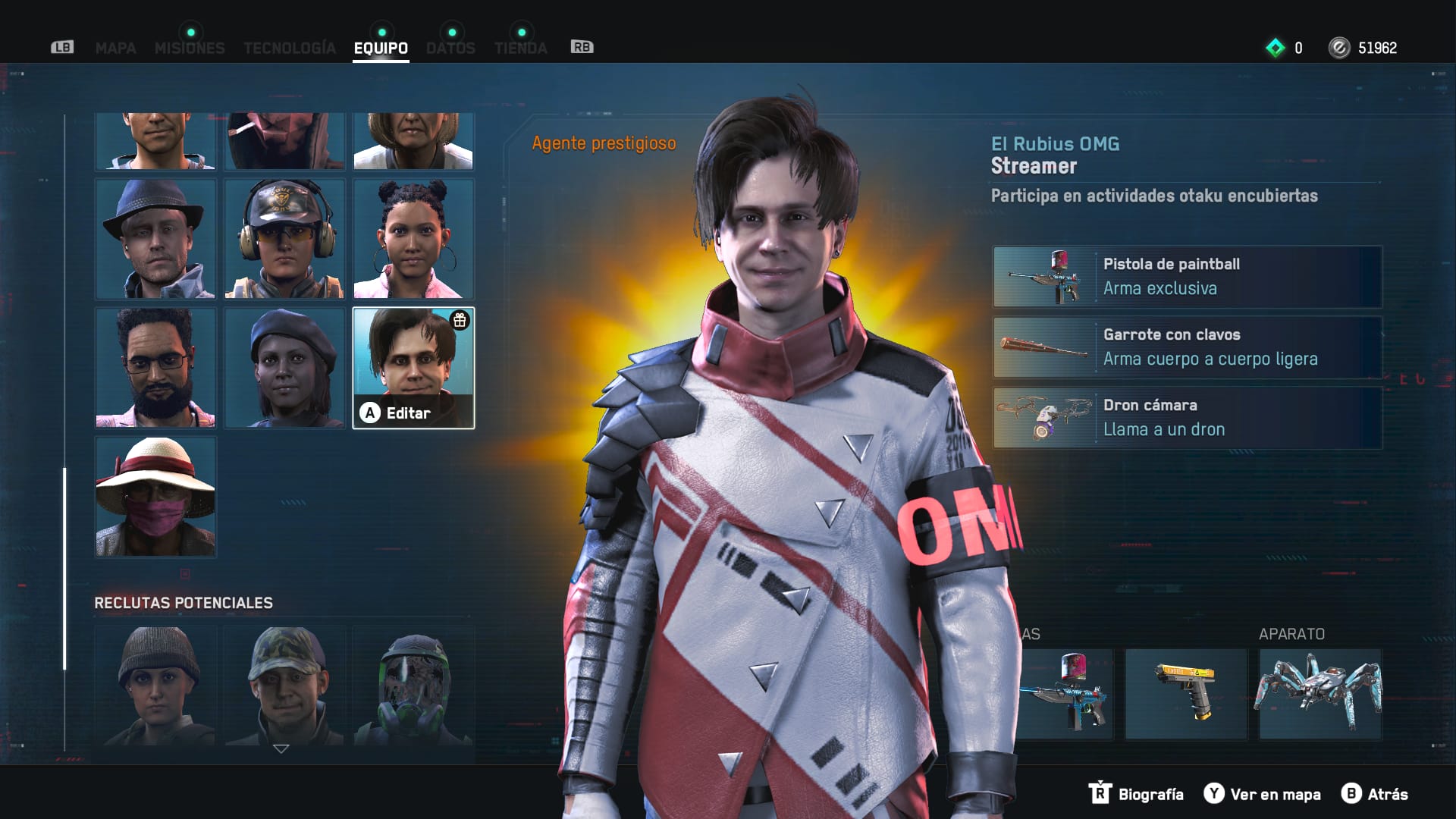El personaje de El Rubius OMG vendrá equipado con una pistola no letal de paintball, un bate de béisbol personalizado como arma cuerpo a cuerpo y un Dron con cámara. Además, también vestirá un conjunto de ropa exclusivo con detalles de su marca. Podéis ver un gameplay jugando con El Rubius en un directo que hicimos en nuestro canal de Twitch mostrando Watch Dogs: Legion, también lo tenéis disponible en nuestro canal de Youtube.