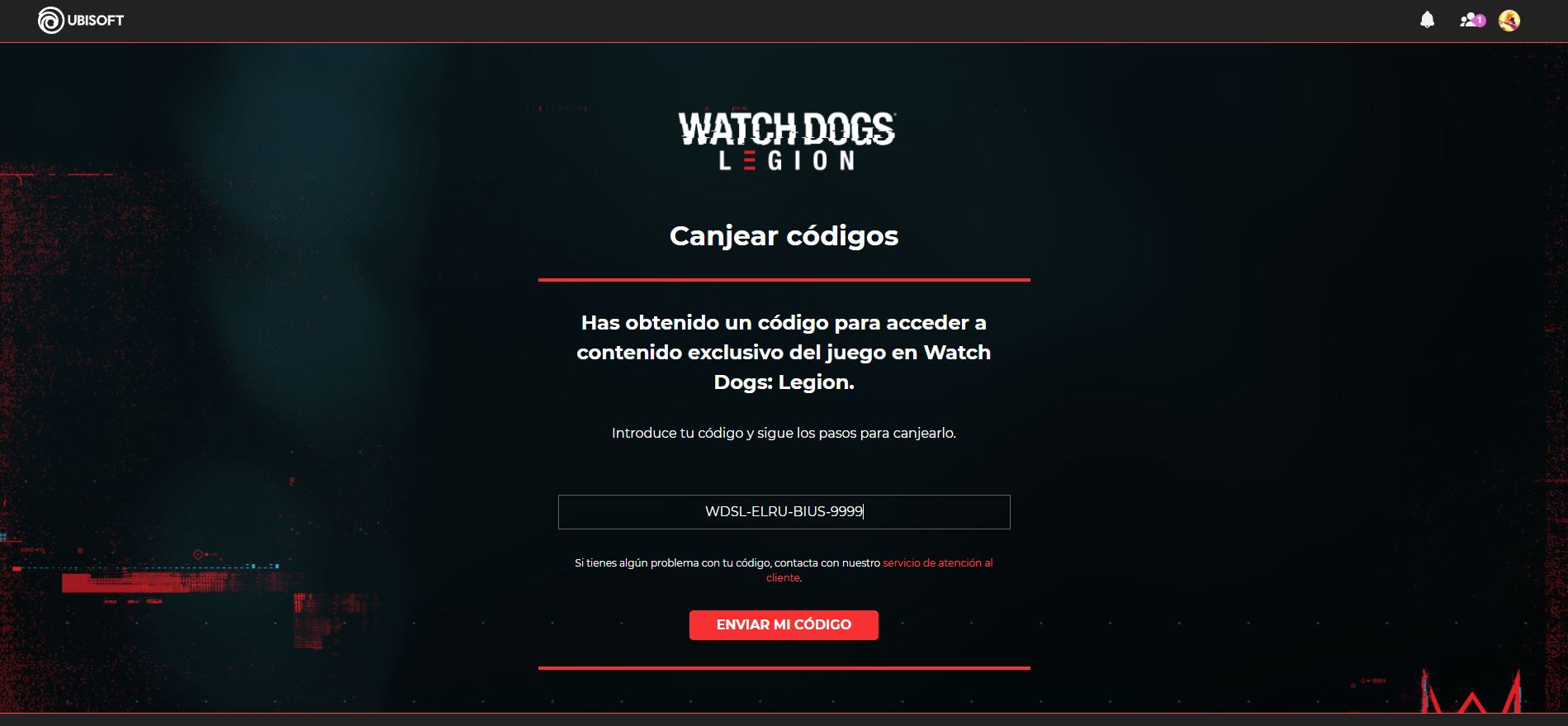 - Introducid el código “WDSL-ELRU-BIUS-9999” en la casilla destinada para ello y haced click en “Enviar mi código” y voilà.