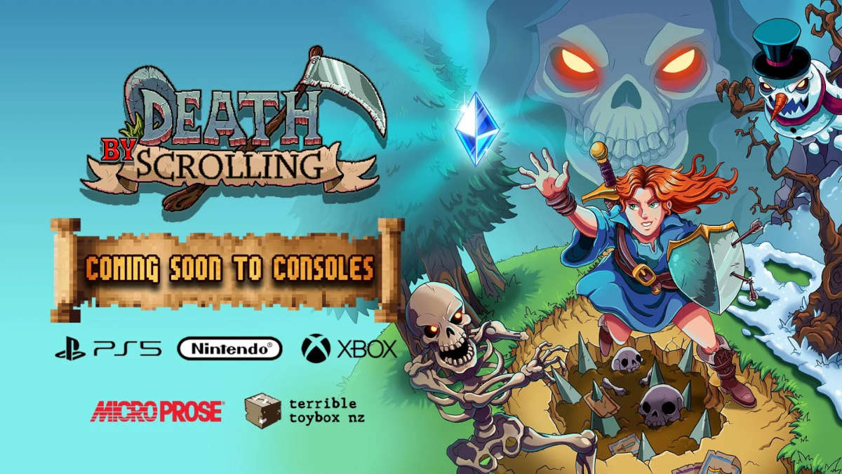 El caótico ascenso por escapar del más allá continúa cuando Death By Scrolling llegue a consolas el próximo 16 de abril, con un lanzamiento simultáneo en Xbox, PlayStation y Nintendo Switch. El estreno en consolas coincidirá con una importante actualización para la versión de PC, que incorporará nuevo contenido y mejoras de calidad de vida en todas las plataformas. Ambientado en la cambiante pesadilla burocrática de Purgatory Inc., Death By Scrolling es un roguelite de acción con desplazamiento infinito en el que los jugadores deberán abrirse camino hacia arriba enfrentándose a monstruos, peligros y la presión constante de la mismísima Parca.
