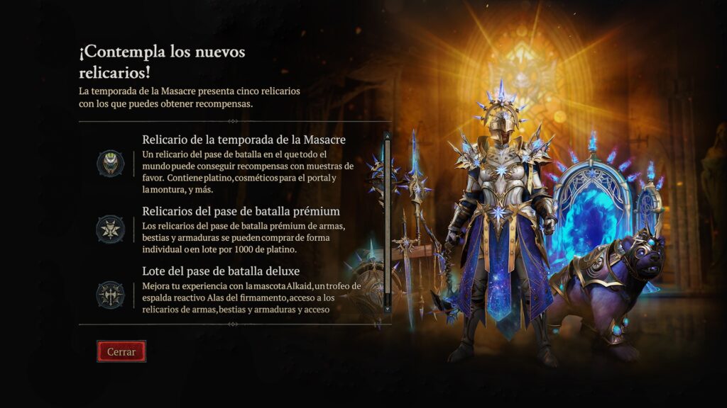 Otra de las novedades importantes es el sistema de relicarios, que funciona como una nueva forma de desbloquear recompensas dentro del juego.