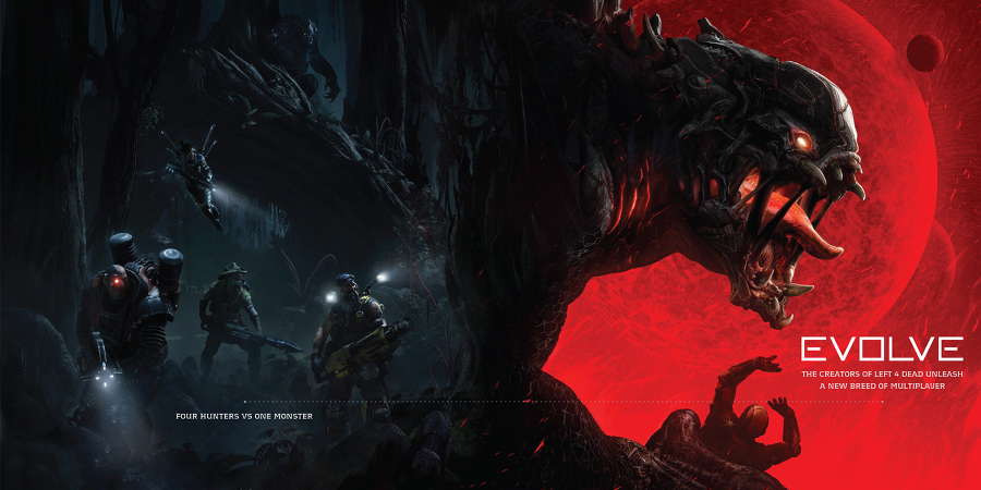 Evolve se trata de un shooter multijugador cooperativo centrado en la ciencia ficción que enfrenta cuatro jugadores de los cazadores de alienígenas contra un monstruo controlado por el jugador independiente que se hace más fuerte tras el transcurso de las partidas. Cada cazador contará con su especialidad, que serán asalto, médico, apoyo y un trampero. Estos se moverán por entornos con vegetación y amplios de planetas inhóspitos en los que también hay fauna local con malas intenciones que estarán manejadas por la Inteligencia Artificial del juego.