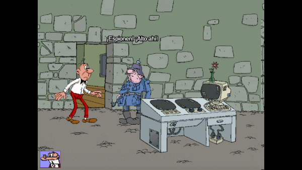 Analizar un juego de 1998 con la perspectiva que nos ha dado el tiempo es un poco feo. En comparación con las aventuras de la época, este juego me parece muy estático, los personajes están vacíos. Es algo que también sucedía con la serie de televisión. El sentido de movimiento que le daba el bueno de Ibañez (Diosito lo tenga en la gloria) en la viñeta no se puede ver en este juego. No tienen vida, ni siquiera con el doblaje. Lo mismo pasa con los fondos. Entiendo que sería una locura replicar los Tebeos con esos chistes de fondo, aquí son muy planos, con pocas estancias que apetezcan explorar. Artísticamente bajo el amparo del autor se podrían hacer barbaridades (ya tal vez con más dinero), pero en una primera prueba de la franquicia optaron por ir a lo directo, sin comerse mucho la cabeza.