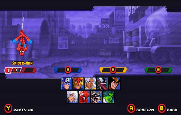 A nuestra disposición tendremos (al menos en esta versión preliminar que hemos probado) un total de 9 superhéroes con habilidades únicas. Los hay más equilibrados como Lobezno o Capitán América (el personaje bajo mi punto de vista más OP), pasando por moles de destrucción como Venom o She-Hulk. Tampoco faltan aquellos más ágiles que basan sus golpes en la rapidez y otras estrategias de combate como SpiderMan o Rocket. Lo bueno es que crearemos un equipo de dos superhéroes, pudiendo alternar entre estilos diferentes según la ocasión lo requiera. En mi caso, utilicé a Lobezno para los enemigos “terrestres”. pero alternaba con Spiderman si quería pasearme con las lianas y de esa manera derribar a los rivales aéreos.