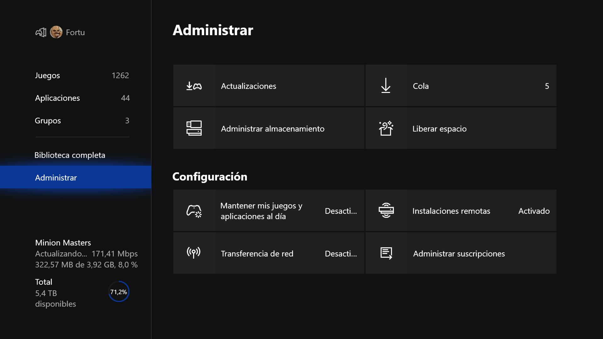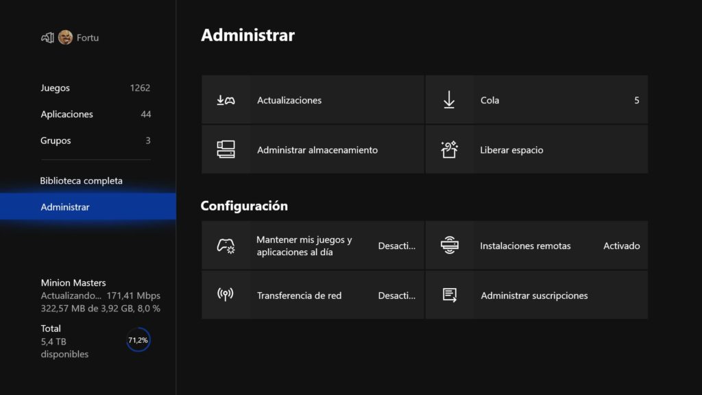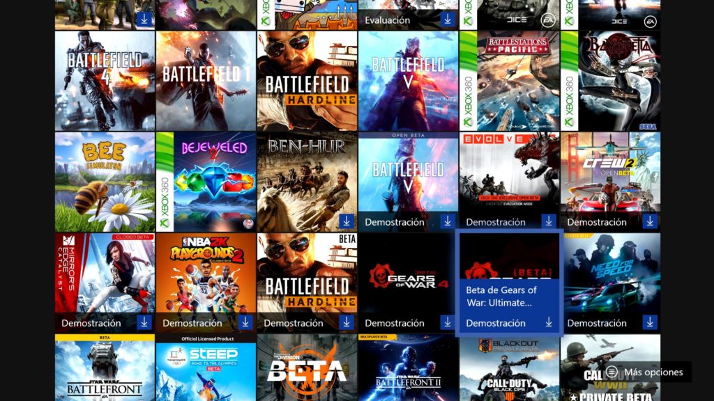 Si bien la pantalla de inicio ha sido la que más novedades había traído es ahora que el equipo de Xbox ha centrado su atención en el apartado de la Biblioteca de juegos, pudiendo ahora separarse los videojuegos por el servicio en que estén disponibles, Xbox Game Pass, EA Access o Games with Gold. Otro de los apartados que ha sido mejorado es la sección de administración, pudiendo elegir si queremos que nuestros videojuegos siempre estén al día con las actualizaciones. Contenido como las demos y betas ahora también tendrá un indicador especial para diferenciarse de los videojuegos completos.